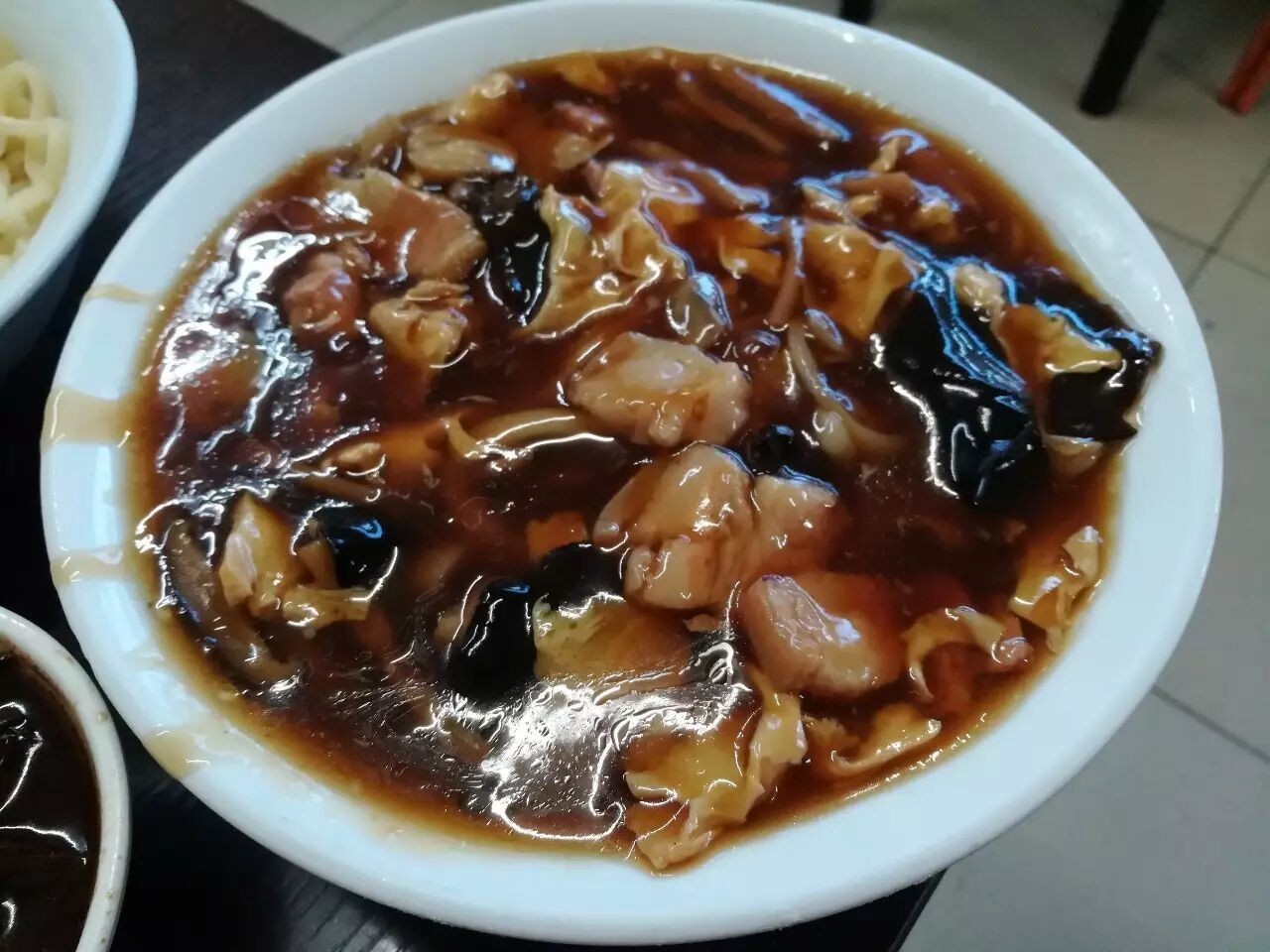 另外一家在赵登禹路,大觉胡同东口的“德华居”。这家打卤面料也很足,并且有鹿角菜,也会在卤上撒蒜末,灌肠同样切的比较规矩,其他菜还有烧羊肉和烂蒜肥肠也都还不错,但是这家的爆肚可以不用点了,不太新鲜而且连刀。老板自称是正黄旗之后,对烹饪也有自己的见解。该店距离地铁站也不远,地铁平安里站向西不到400米即是,只是停车不太方便,北边路过的盆友们,可以顺便去看看。