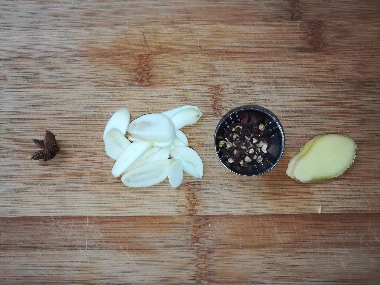 处理好的调料,作者家里没葱,还犯懒没买,就没放┑( ̄Д  ̄)┍ 拍摄:二猪