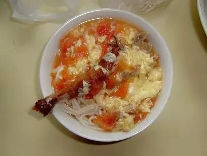 另外一种西红柿打卤面更简单,高汤煮西红柿,煮熟后勾芡打入蛋花,因方便美味,家母也经常制作。汆卤面的种类更多,比如肉末酱油汆、西红柿鸡蛋汆、羊肉白菜汆、白肉酸菜汆、雪里红肉末汆等等,总之都是家常口味。
