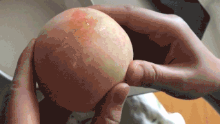 被揉捏过的桃子产生了丰富的桃汁,扎个眼就能喷水