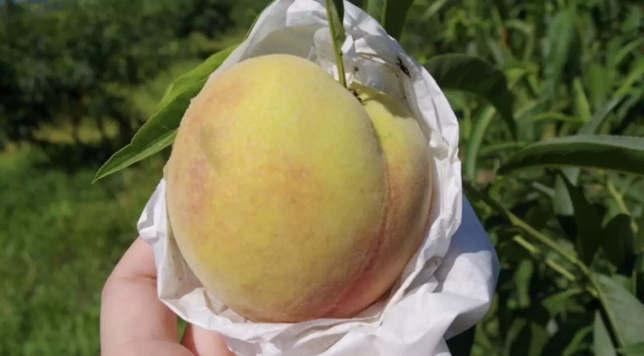 好桃子卖的好,增产还来不及,为什么反而会减产?原来,为了保证桃子的质量,果农会进行人工疏果——把每棵树上长得过多的小桃子无情地摘掉,只让它结20到30只优质果。桃子成熟前,果农还会给桃子们套上绿色安全的奉化水蜜桃专用袋。套袋既保护了果实不受虫害侵袭,也不用再使用农药。