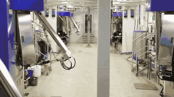随着技术发展, 如今出现了全机器人式挤奶厅,挤奶机器人可以全天24小时不间断工作,挤奶过程也不需要人工操作。