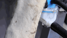 乳·房下端有一个喷淋装置,会对挤完奶的乳·房喷洒消毒液,防止病菌入侵乳·房