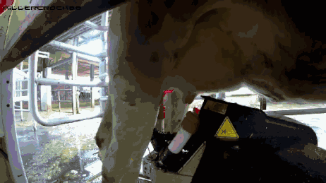 挤奶机器人使用激光扫描定位的方法,精准定位,自动完成套杯工作。
