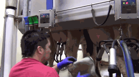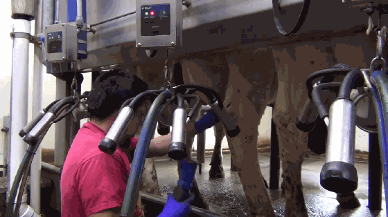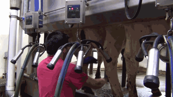 不管是哪一种,挤奶流程都大同小异:赶牛入栏--清洁乳·房--套杯挤奶--脱杯消毒。