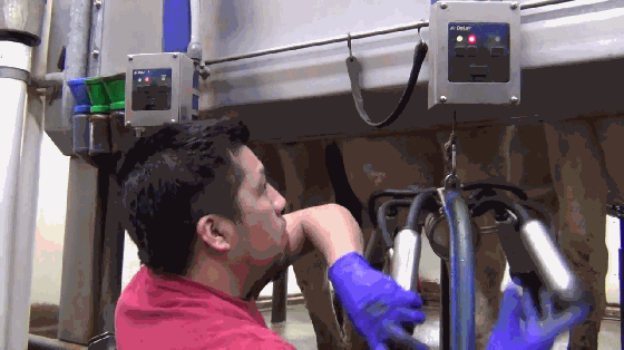 每一套挤奶杯组上有一个流量监控器,当收集到的牛奶流量小于设定的最小流量时,真空杯会自动脱杯。