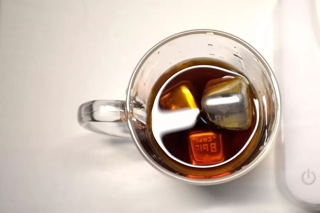 但是这个问题好解决,我们直接用金属冰就好,在饮用的时候保持低温又并不会溶解稀释。只加凉,不掺水!金属冰的冰点比水更低,还可反复使用,而且拍照好看!