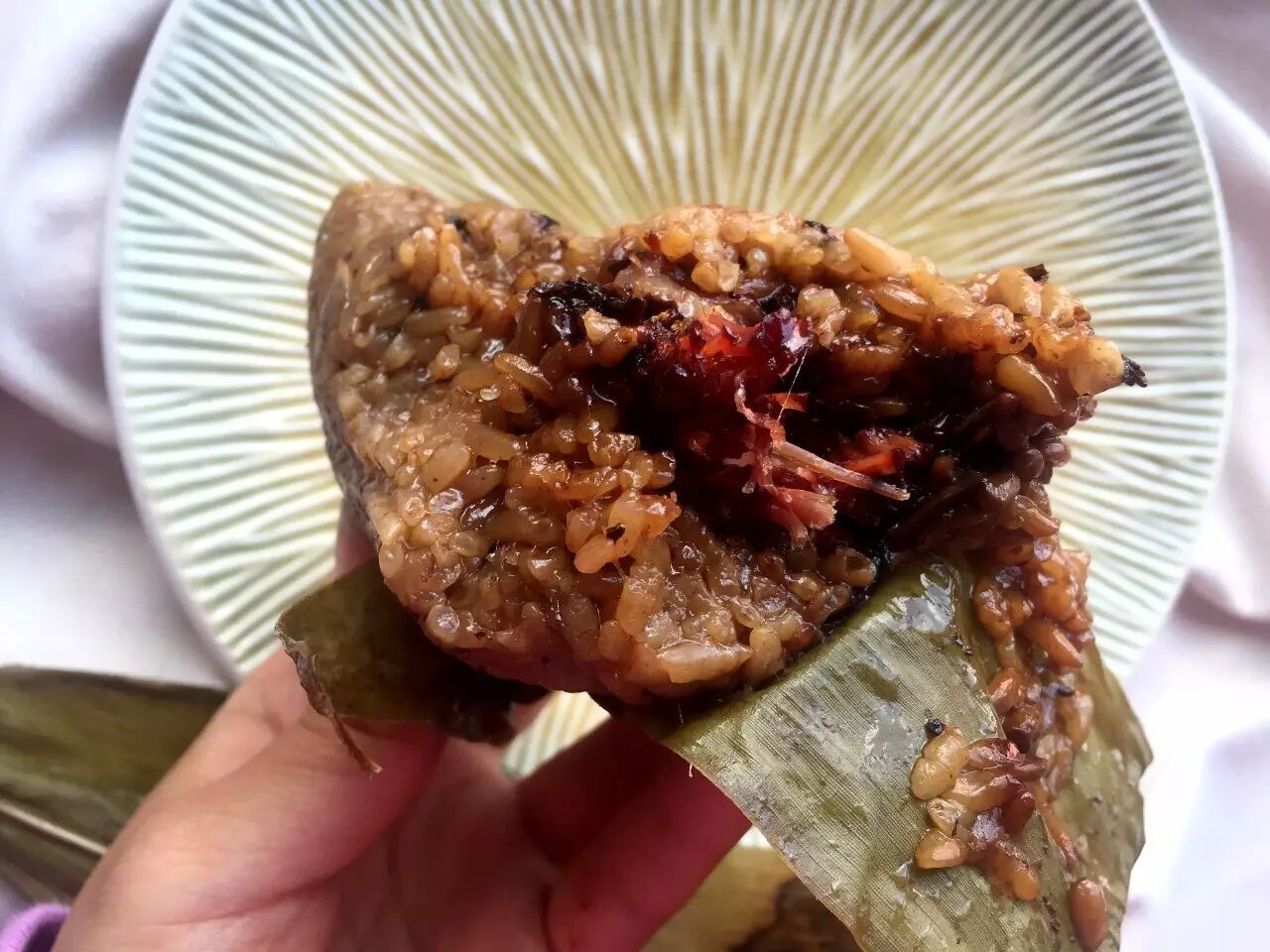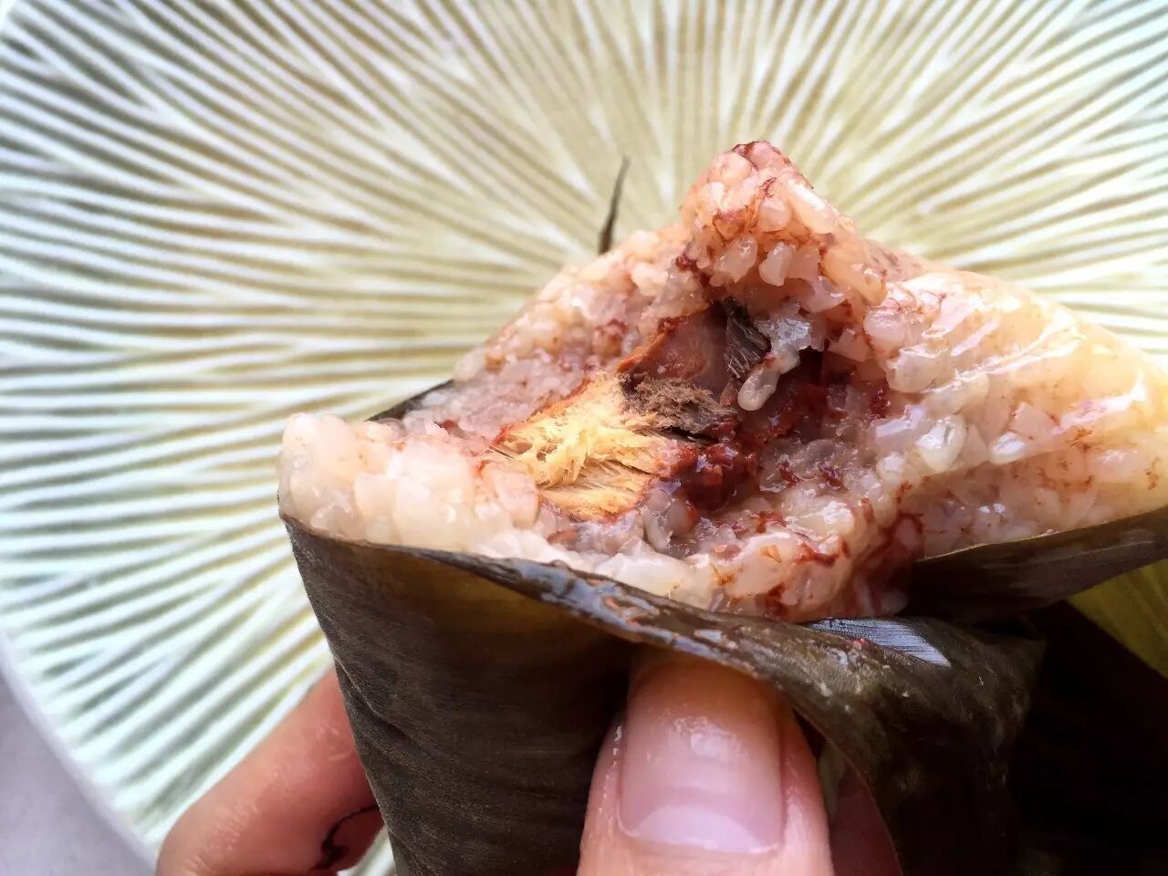 印象深刻的是茄汁鲭鱼粽,里面有三四块咸甜口的鱼肉干,本以为鱼肉馅的会黑暗,但完全不会。粽子加热后香气十足,咸甜口的鱼肉干跟糯米结合,酱汁很入味,奇妙又丰富的口感,风味独特。