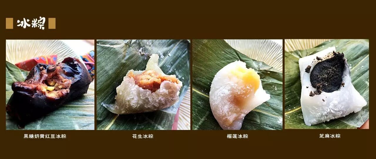 水晶冰皮和麻糬皮都是麦芽糖浆加淀粉制成,吃着QQ的,个头也不大,当零食不错。雪冰粽就是很独特的一种冰皮粽子,里面是冰淇淋馅儿的,吃着是跟糯米糍雪糕一样的口感。这些粽子糖分大多奇高无比,吃着能比传统粽子健康?开玩笑!