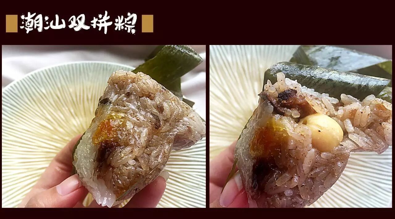 大概只有潮汕人民不会在粽子是吃咸还是吃甜上纠结,因为潮汕有一种叫“双拼”的粽子。这个粽子的主要特色在馅儿,一个双拼粽,它的甜馅和咸馅要分配得恰好,才能层次分明,同时显出咸、甜两味。