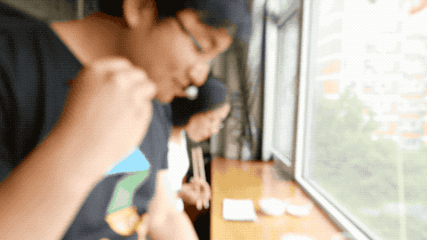 科学人主编wuou大大在津津有味地品尝米饭。作为资深家庭煮妇,拥有买米煮米吃米的超多经验,非常有资格对米饭进行测评。