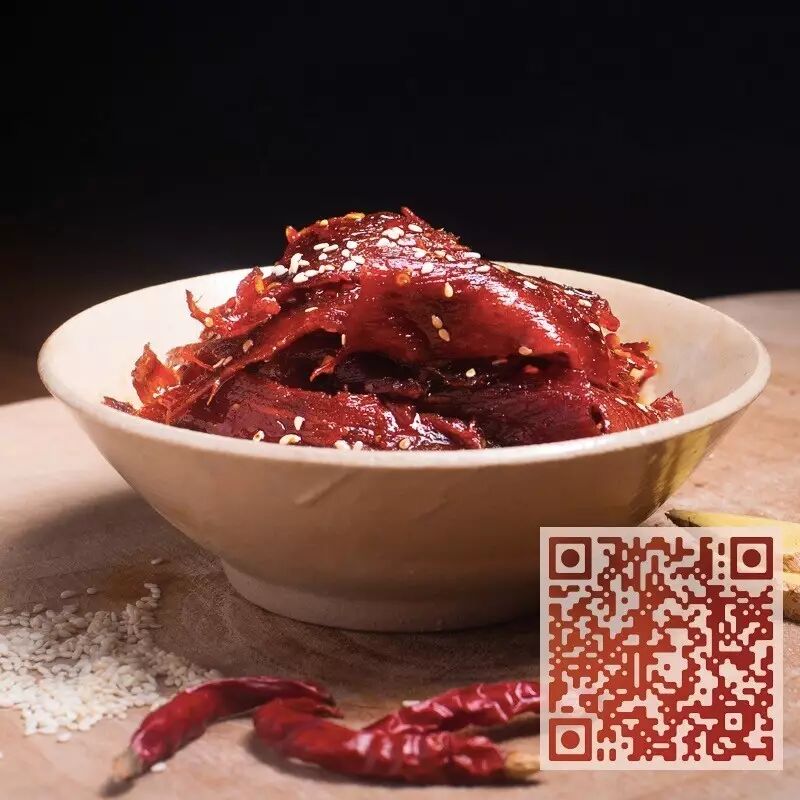 火边子牛肉是自贡的地方名产,选牛后腿上的“股二”、“股四”肉,切成寸许厚的肉片,再将其钉在呈45度的木板上,用刀片成纸样的薄片,不能有漏孔漏缝,然后在上面抹上少许的盐和酱油,悬于通风处晾干,再摊在竹篾烘笼上烘干。牛肉薄如蝉翼,红亮透明,最后涮上辣椒红油,就成了火边子牛肉。