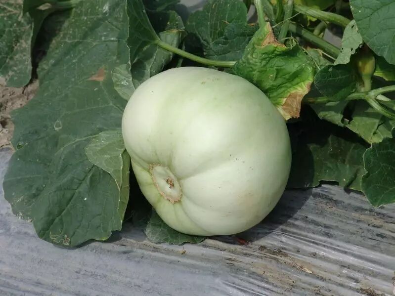 白兰瓜属于卡沙巴变种,特点是果实几乎是个完美的球形,果实的表面没有网纹,果柄很短。白兰瓜白绿色果肉很软,多汁味甜,从它们的英文名Honey Dew就可以感受到这种甜瓜的特别滋味儿。