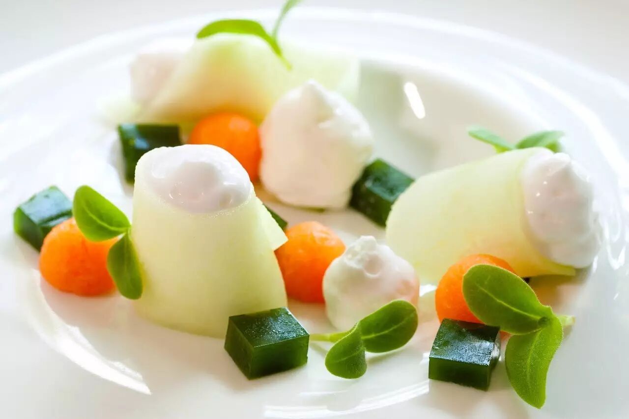 不仅是长相不同,甜瓜的不同吃法,也直接造成了身份上的差异和价格上的分歧。比如,普通的甜瓜就是从地里的甜瓜藤上摘下来,随便在身上蹭蹭就可以享用;即便是哈密瓜,也是随意切开,抱着就啃。但是这并不代表甜瓜不能变身大菜。