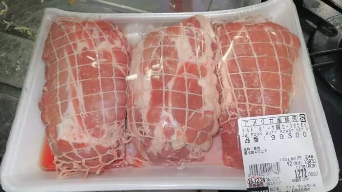 知道懒人多,日本超市里有捆好的猪肩肉。图:netank.net