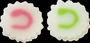 有不少拉面中会放两个有红色螺旋花纹的白色片状物体,吃起来有点像火腿肠还有鱼味,这是鱼板的一种——鸣门卷。鱼板日文原文是蒲鉾,是一种用黄线狭鳕、狗母鱼等白身鱼的肉搅碎后再加盐、糖、蛋清、淀粉等配料再蒸熟而成的食物。鸣门卷有许多种类,主要的区别是造型——比如卷在细竹筒外面蒸熟的就叫做竹轮,放在木板上蒸熟的叫板蒲鉾,而用食用色素染色,再用小竹帘卷起来蒸的就是拉面里的鸣门卷了,齿轮一样的边缘本来是竹帘卷过之后留下的,现在很多则是模具加工出来的。其实鸣门卷不止有白底红纹的,还有红底白纹的反色版本以及各种其他颜色和花纹的版本。