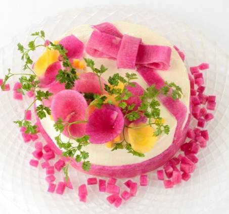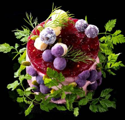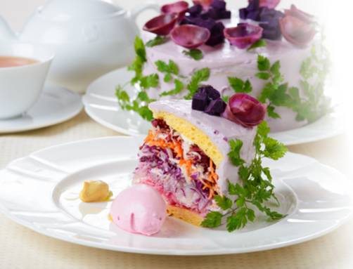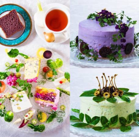 没错!用沙拉做成的蛋糕!是不是难以置信?素食、低卡、甜点,这些似乎跟完全扯不上关系甚至可以说是对立面的词汇,居然同时用来描述同一个食物!而且每一个蛋糕都精美绝伦,是让人不忍下口的艺术品。这么神奇到底是如何做到的?
