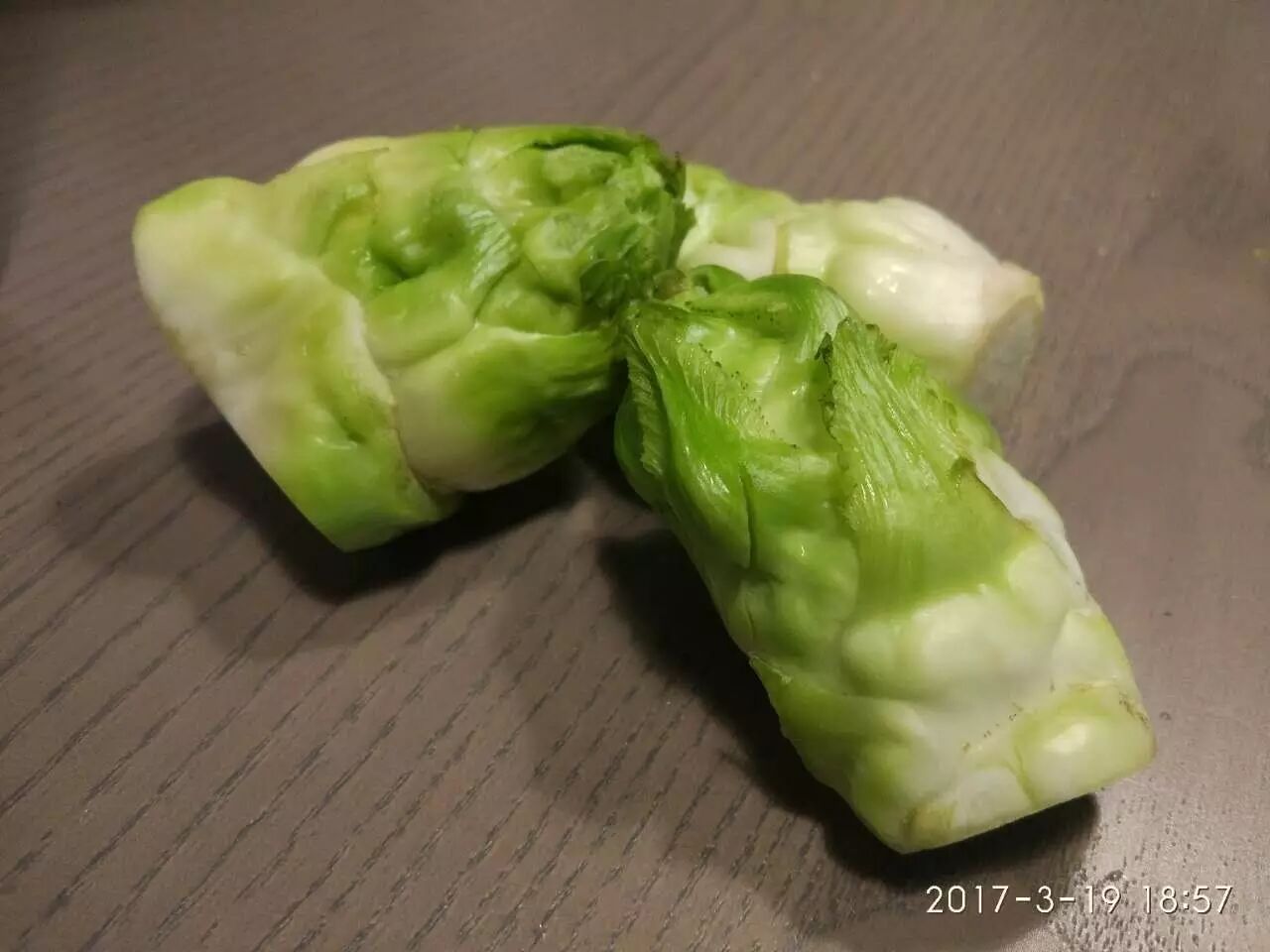 买的儿菜如果比较老的话,就把外层皮削掉,就像削莴苣皮那样削,但是别把顶部的绿色削掉哦。如果嫩就不用削皮啦。