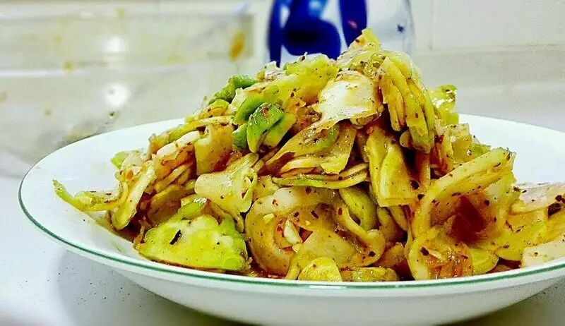 儿菜也是可以跟做成榨菜的青菜头一样腌来吃的,它腌制过后,又完全不是榨菜的口感。儿菜是可以生吃的,它腌制的时间也短,一般腌个1-2小时便能吃了。儿菜有几种腌法,第一,可以切片切丝来腌,撒上盐拌匀,等个1小时,再加点油辣子和调味料,就是配饭的小菜,用来拌面也是一绝;第二,可以将儿菜切好后用盐脱水,风干腌制。风干后的儿菜比风干后的榨菜吃着略带湿润的口感,拌上辣椒面和味精干吃当零嘴儿特别棒,我小时候生病没胃口,妈妈怕我不爱吃没味道的白粥,就弄上一碗腌干辣儿菜,我吃着可是贼拉香了;第三,那就是用泡椒来腌。准备一个坛子,将泡椒、盐、生姜、蒜、生水还有切块的儿菜,白萝卜、卷心菜放进去,泡上一两天就是川渝地区的开水泡菜,泡椒泡好的儿菜吃着有种很带劲的酸爽感,可以直接吃,也可以做酸菜鱼,酸菜炒肉,酸菜面等等,特别百搭,而且一起腌制的白萝卜条和卷心菜也算是附赠的福利。
