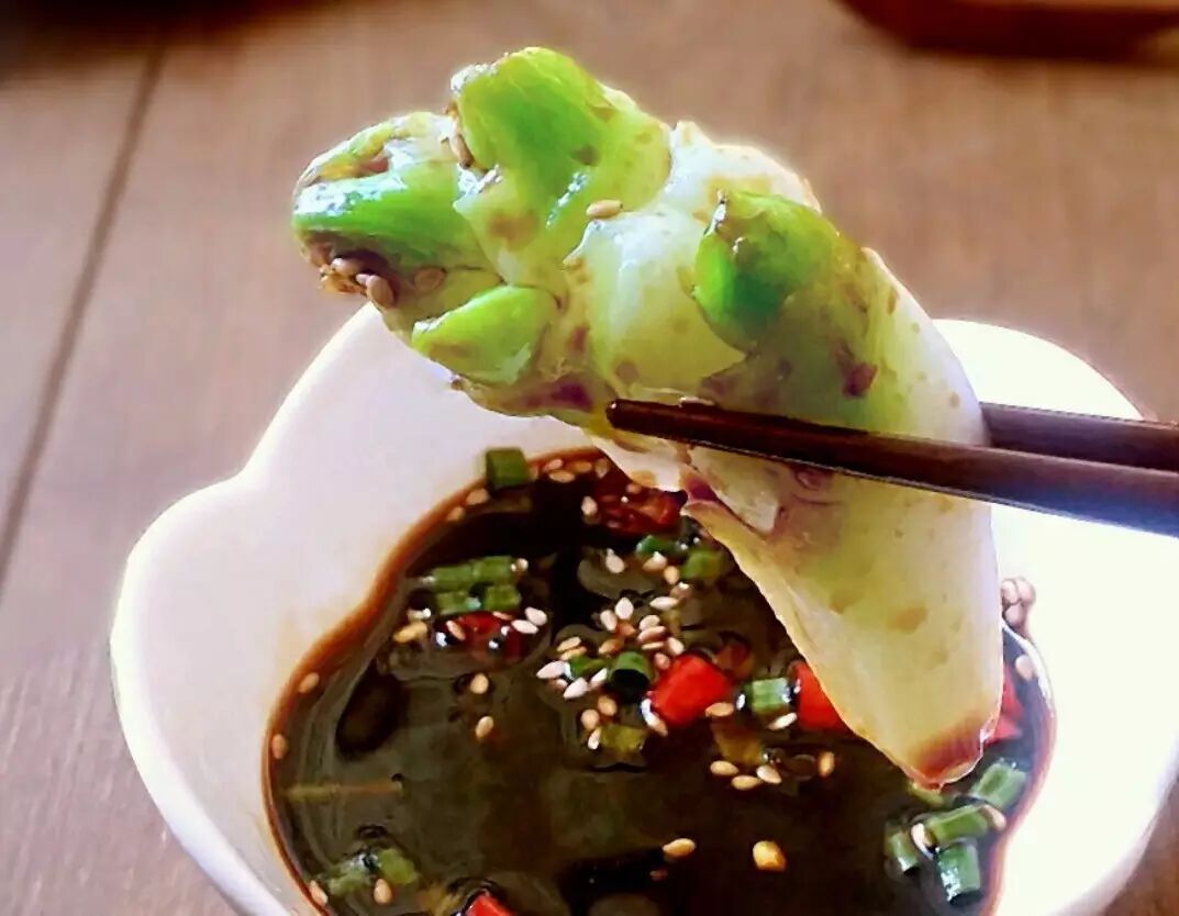 烫煮儿菜配辣子酱油。图:豆果美食网友艾米厨房