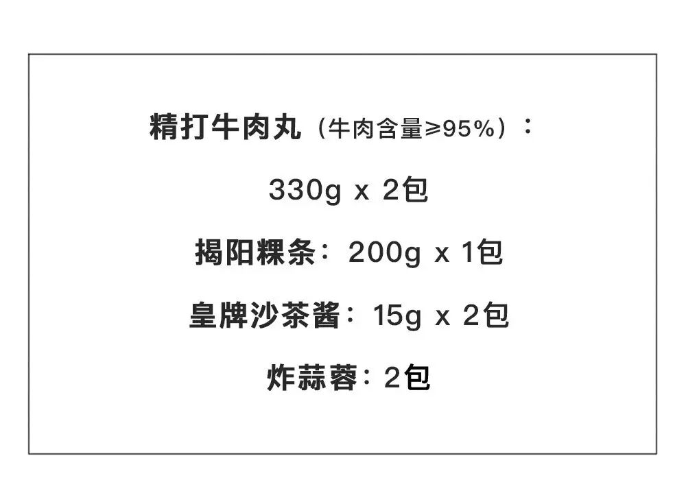 为了让不在潮汕的朋友们,也能用最地道的方式在家品尝到牛肉丸,痛痛快快地满足口腹之欲,所长远赴大吃省,为大家寻得了这款“牛肉丸粿条”套装。都来试着自己做一碗牛肉丸粿条吧,上面提到的那些,“假扮成一个正在吃牛肉丸的潮汕人”时该有的东西,这个套装都备齐啦: