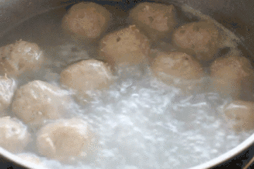 煮熟后像乒乓球一样翻滚的牛肉丸。