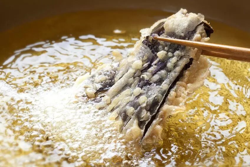 正在被炸的茄子。图:123rf.com.cn 正版图片库