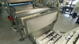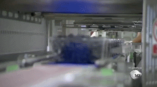 这条生产线的颜色感应器更加先进:不仅可以检测到颜色的不同,还能通过果实掉落时的反弹程度检测其饱满度。如果果实太软,则会被送到冷藏室冷藏12天以上。如果果实不饱满,空气喷头会将其喷到传送带上,送到冷冻生产线。