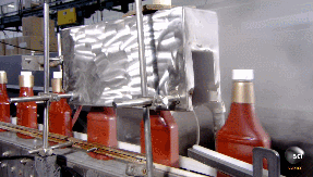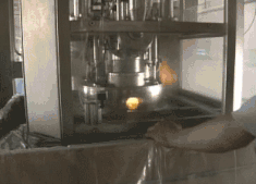 食物的加工其实对于爱吃会做饭的大家可能不觉得神奇,食品工厂里最让所长着迷的其实是灌装包装生产线。那些小机器零件之间精密默契的配合,完成了一个个颇具难度的动作,而且速度飞快肉眼难以捕捉到每一个动作。盯着看会上瘾!压盖机将塑料盖轻轻地扣在瓶子口,然后通过两个旋转的轮盘,瓶盖就被拧紧了,你说鹅不鹅妹子嘤!