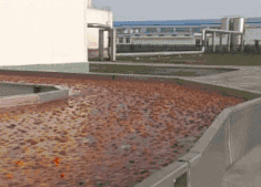 新鲜的番茄,经过收割、运输、清洗、然后漂在流动的水带上运送到车间里。