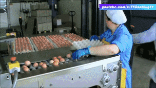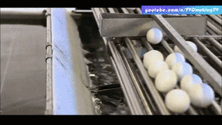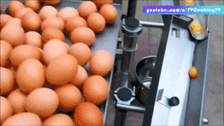 传送带运送鸡蛋到固定位置,“爪子”抓住鸡蛋,暴力夹碎,蛋清蛋黄顺势甩到缸中,于是得到一缸鸡蛋!