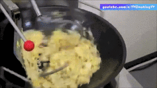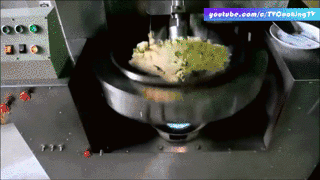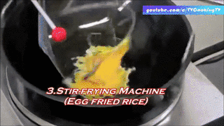 普通版本是这样的,将鸡蛋、米饭、碎肉、葱花等原料依次倒入锅中,搅拌器会逐渐搅拌直到将做好蛋炒饭。所有原料都在锅中,旋转跳跃闭着眼