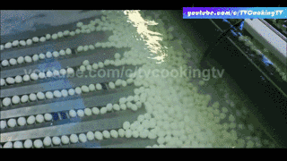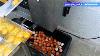 接着蛋液经过轨道,蛋清被滤下去,只剩下蛋黄。