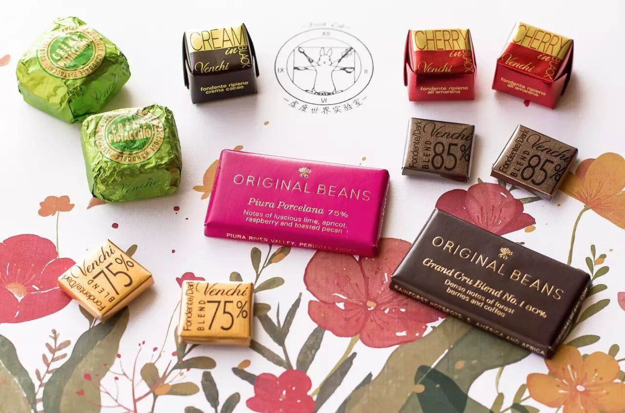 Venchi1878和ORIGIANL BEANS两个品牌是我们这次的选择,前者是老当益壮的意大利百年老店,品种经典可供历史考验,后者是巧克力届的新秀,每一块儿的背后都包含了一份对热带雨林发展的小小贡献。