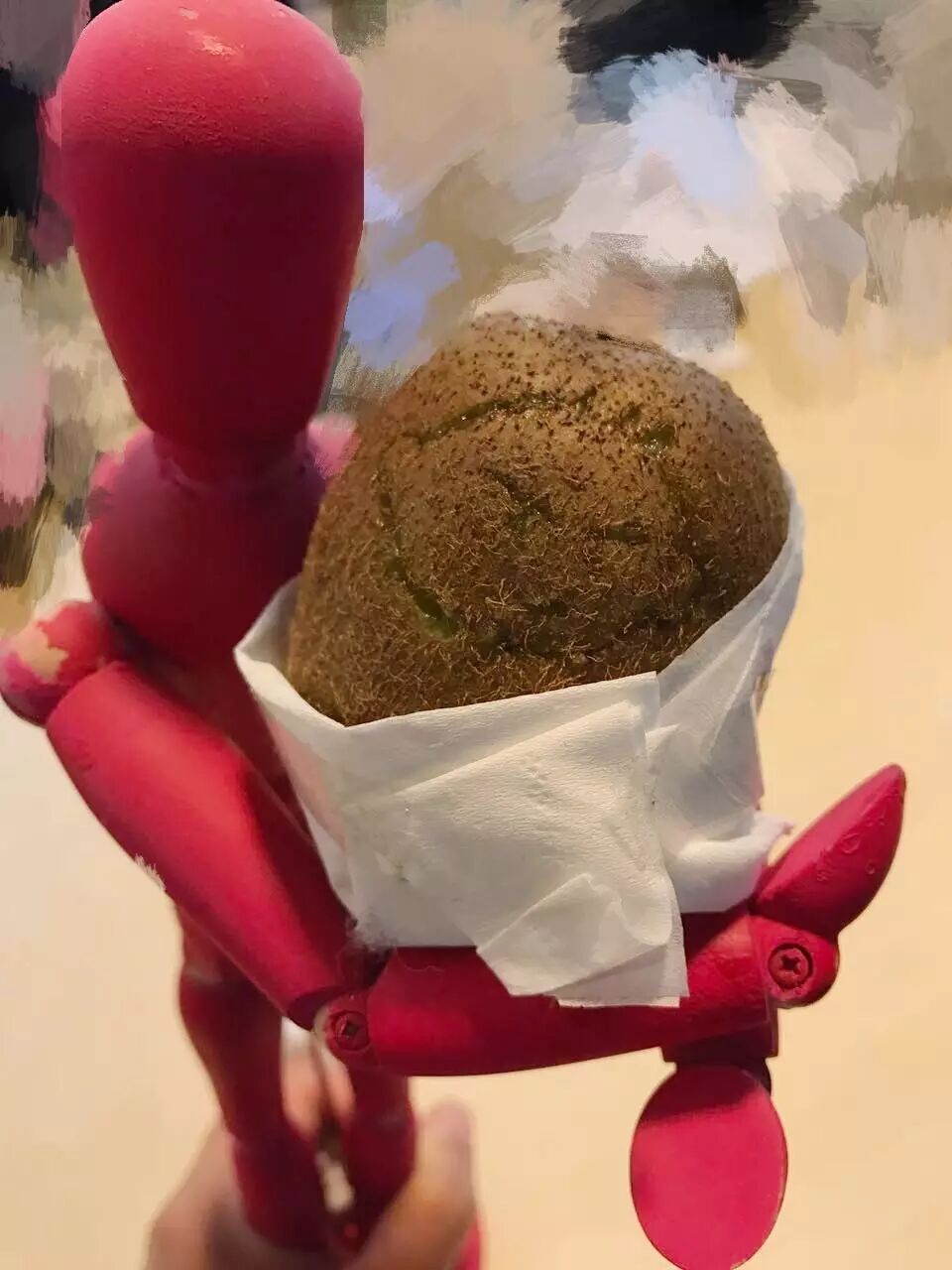 这幅作品应该是一个三毛猕猴桃宝宝,但让所长心疼的是,这个宝宝的纸巾襁褓也太糊弄了吧!
