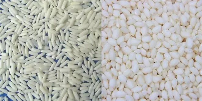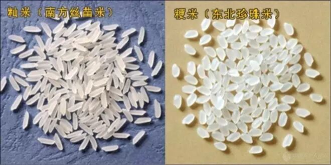 籼稻和粳稻所产米粒的外形区别。图:191.cn