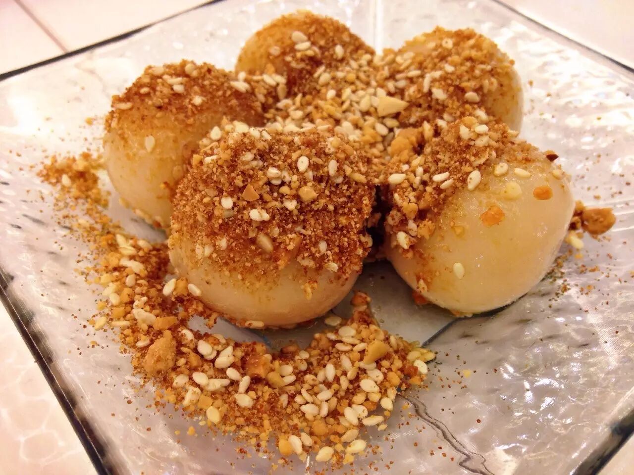 粤式甜点。汤圆的孪生兄弟,熟糯米小圆子放进熬热的糖浆中接着煮,出锅后撒花生碎、芝麻。