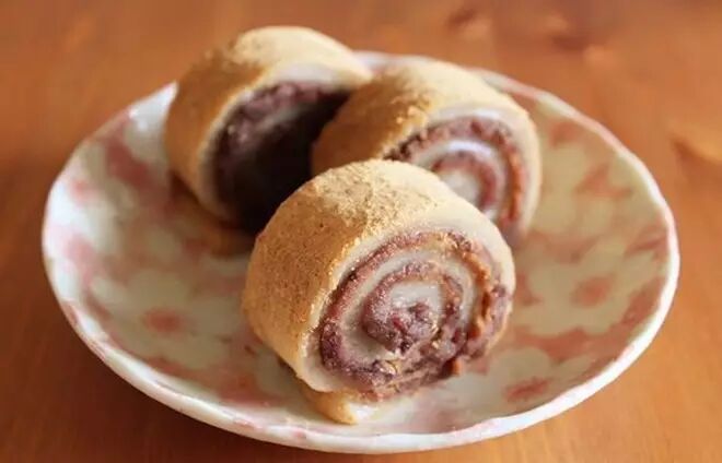 北京小吃。最正宗的要用黄米面,但现在很多用的都是糯米粉,蒸熟的糯米面铺上红豆沙,卷成卷切开,裹上炒熟的黄豆面。