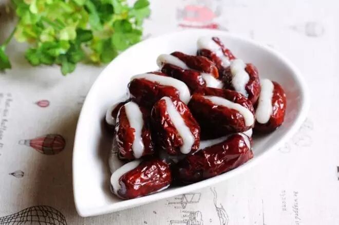 糯米面搓成小条塞进去核的红枣里,看着就很赏心悦目。