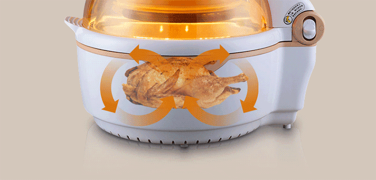 用空气替代原本煎锅里的热油,用近似太阳热风的对流加热,以热风在密闭的锅内形成急速循环的热流,让食物变熟;同时热空气还吹走了食物表层的水分,令食材无需滚油也能达到近似油炸的效果。