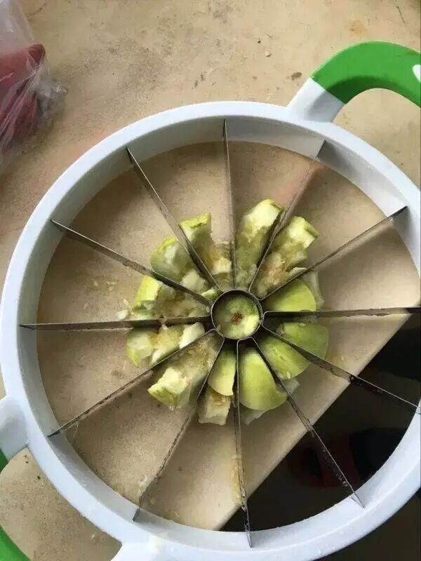 很多人推荐的削菠萝神器,但是你们考虑到一个bug了吗。它对菠萝大小是有严格限制的!买个大菠萝意味着很多果肉就留在了果皮上,这对一个吃货太残忍了。买到小菠萝又塞不进去!如果你天天自己做菠萝饭吃,那也许买来是个不错的选择。