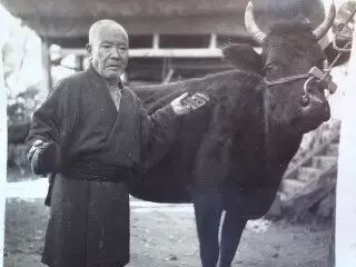 黑毛和牛的祖先田尻号和它的主人 。 图:www.greenpapa.org