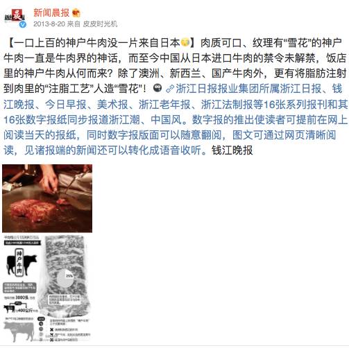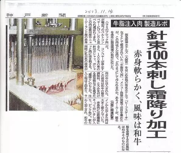 日本新闻中报道的注脂牛肉。 图:blogs.yahoo.co.jp