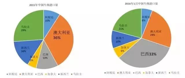 近两年中国进口牛肉进口量比例。 图:www.91haorou.com