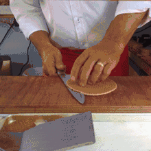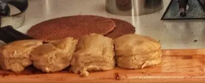 2. 趁热把刚出锅的华夫饼从中间片开,一定要趁热,凉了就片不开了。