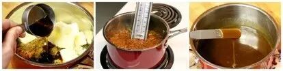 把蔗糖糖浆(或者糖蜜,估计果葡糖浆也可以)煮开,加一点点桂皮粉,一边搅拌一边小火炖上10分钟,然后把黄油切成小块化在里面。当然,甜牙齿的你也可以额外再加些白糖进去。关火,继续搅拌,直到糖浆冷却,变成黏稠的糊糊。