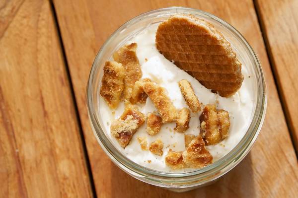 Stroopwafel其实是个特别乡土的名字,翻译过来就是:焦糖华夫饼。看长相就明白了,Stroopwafel就是中间夹着薄薄一层糖浆的华夫饼。她的出身也特别乡土:1784年在荷兰一个叫豪达(Gouda)的地方(记住这个地名,让他闻名于世的美食居然不是Stroopwafel…),一个连姓名都已经不可考了的烘焙师傅,舍不得浪费店里剩下的那点儿面包渣和饼干屑,把这些东西连同没用完的桂皮粉揉吧揉吧做成华夫饼,在里面加上糖浆,Ta-da!焦糖华夫饼就这么在一次废物利用的闯做中诞生了。