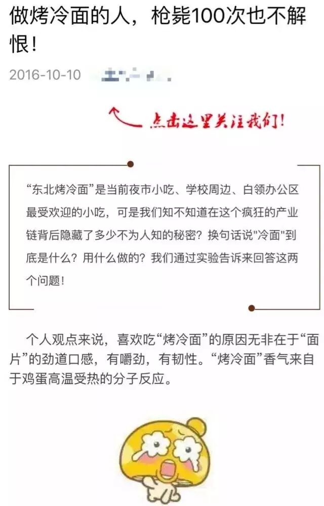 烤冷面是很多人都喜欢吃的小吃,传统而简单。不过,最近一条消息却在朋友圈流传开来,内容大致如下: