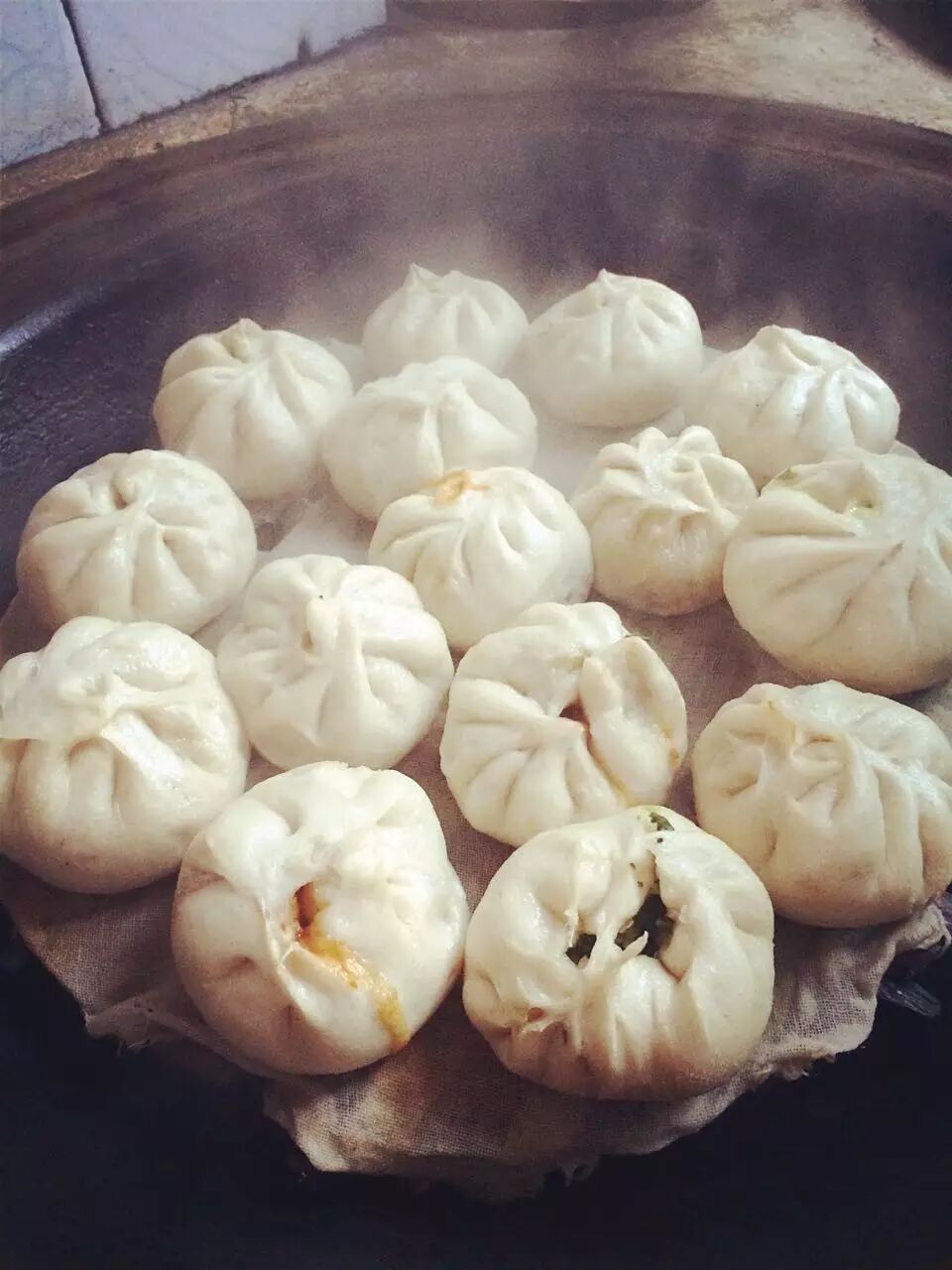 小伙伴亲手包的包子,据说就自己随便捏的。