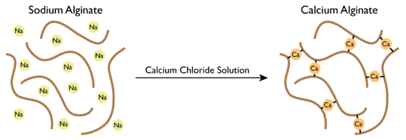 在钙盐的作用下, 海藻酸钠形成凝胶。